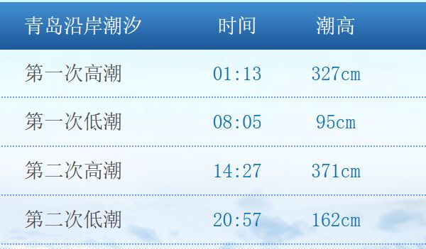 由于我无法实时更新数据,以下是一个典型的青岛涨潮和退潮时间表示例。请注意,实际时间可能会有所不同,具体时间需要根据当天的潮汐情况来确定。您可以通过以下方式获取实时更新的潮汐信息:
