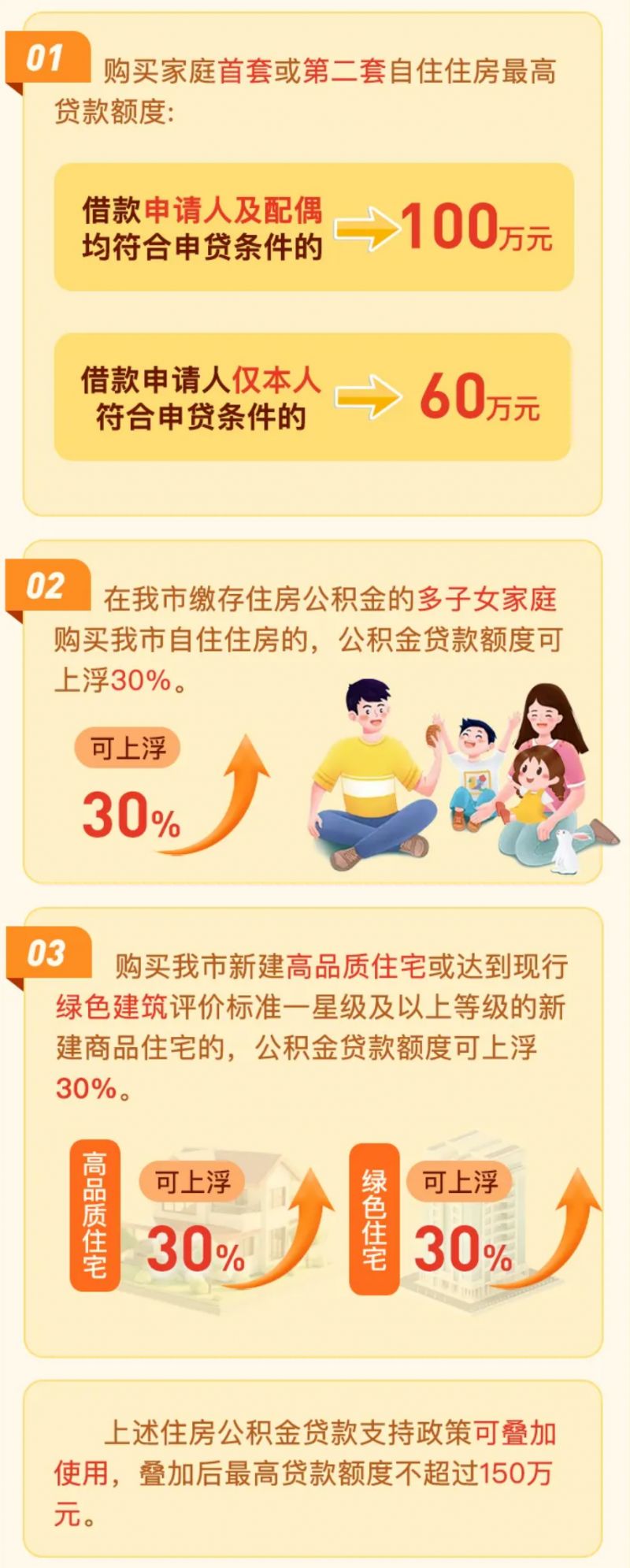 2.在我市缴存住房公积金的多子女家庭购买我市自住住房的,公积金贷款额度可上浮30%。