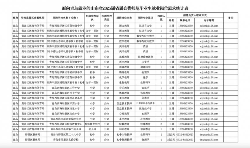 附件:面向青岛就业的2025届省属公费师范毕业生就业岗位需求统计表(点击图片查看大图)