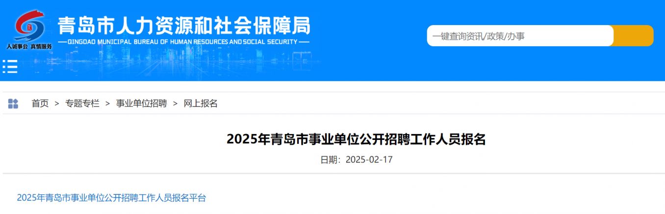 1. 青岛市人力资源和社会保障局网站; 2. 青岛市事业单位招聘网; 3. 青岛市各区政府网站; 4. 各区人力资源和社会保障局网站。