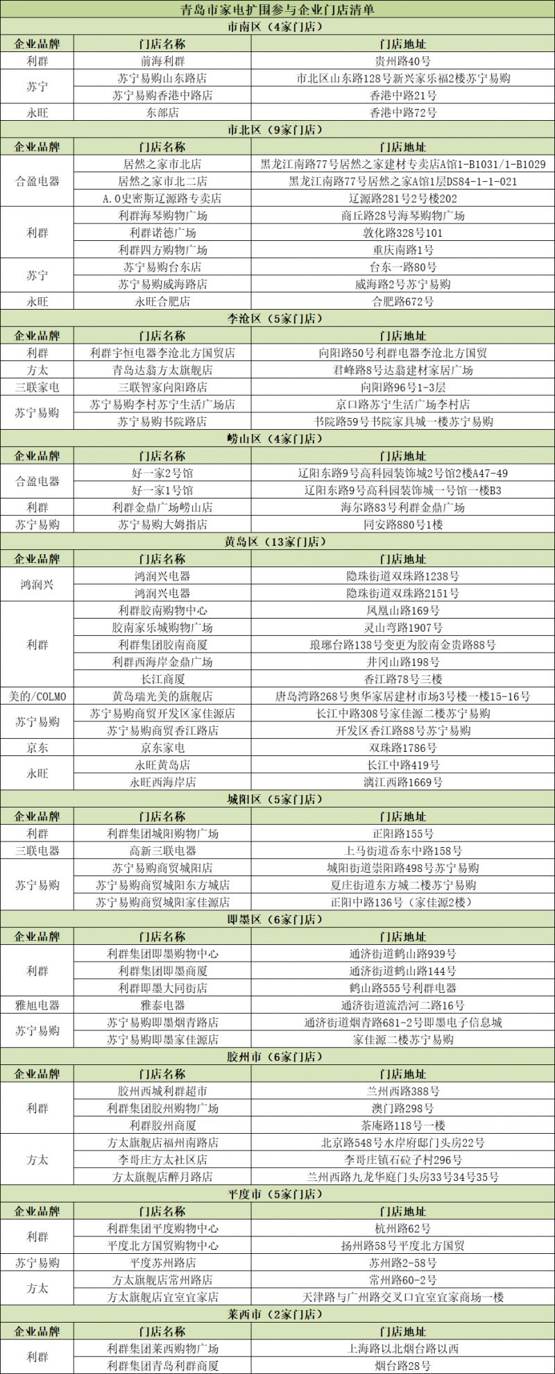 青岛地区指定家电类销售企业门店。详见“家电扩围”专区内“可用门店”清单。