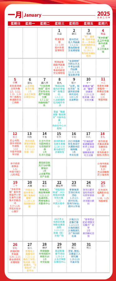 以下是一个假设的2025年青岛上合新区文体商旅活动日历第一期,包含了一些可能的活动安排。请注意,这些信息是虚构的,具体活动以实际情况为准。