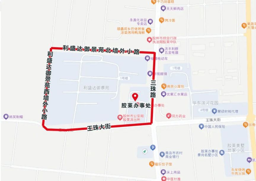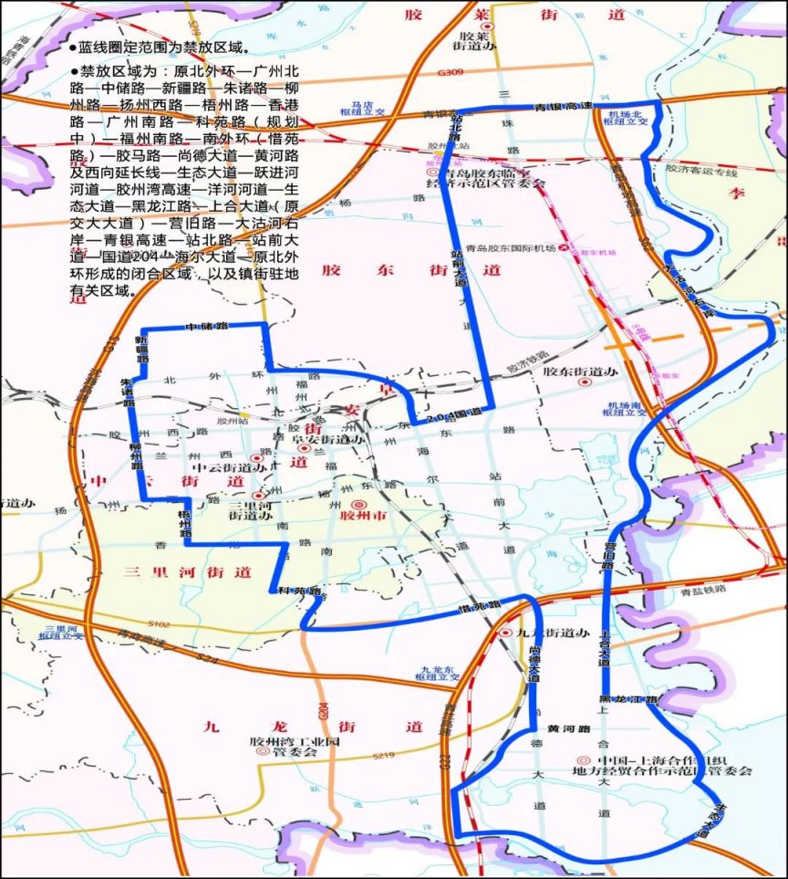 青岛胶州市烟花爆竹禁放区域(持续更新) 【2025年1月10日更新】 胶州市行政区域内,下列区域禁止燃放烟花爆竹  原北外环—广州北路—中储路—新疆路—朱诸路—柳州路—扬州西路—梧州路—香港路—广州南路—科苑路(规划中)—福州南路—南外环(惜苑路)—胶马路—尚德大道—黄河路及西向延长线—生态大道—跃进河河道—胶州湾高速—洋河河道— 生态大道—黑龙江路—上合大道(原交大大道)—营旧路—大沽河右岸—青银高速—站北路—站前大道—国道204—海尔大道—原北外环形成的闭合区域及镇(街)驻地有关区域。 镇(街)驻地有关区域范围如下: 胶北街道办事处:东至东轿杆路,西至王庸路,南至北都路,北至康健路。  九龙街道办事处:东至营海路,西至青盐铁路,南至营匡路,北至青盐铁路。  胶莱街道办事处:东至三珠路,西至利盛达御景苑西墙外小路,南至王珠大街,北至利盛达御景苑北墙外小路。  胶西街道办事处:东至尹家沟大街,西至叶赵路,南至翠竹苑小区南侧东西路,北至扬州路。  李哥庄镇:北九路—沽源路—青啤广场美食街—小吃街东内部路(党群服务中心西侧南北路)—航谊路—广场大街—北九路形成的闭环区域。  里岔镇:东至祓泽大道,西至子瑞路,南至牧城大道,北至里岔镇政府大楼北侧东西生产路。  铺集镇:东至铺里路,西至铺畅路,南至朱诸路(S217),北至德孝大道。  洋河镇:东至西石路,西至洋河小学西墙外南北延长线,南至冷家村南东西大街,北至219省道。 该范围划定区域以路为界线的,以该路处于禁放区域的外路边线为准。若沿路村庄、小区、企业、单位跨越道路的,该范围外延至该村庄、小区、企业、单位实控的所有区域。 该范围划定区域以河为界线的,以分界的河道中心线为界线。 该范围以水库库岸为界线的,以临近禁放区域的实际水面线为界线;以水库大坝为界线的,以大坝远离禁放范围的坝沿为界线。 行政区域内禁止制作烟花爆竹 胶州市行政区域内,禁止制作烟花爆竹。 禁放区内禁止销售烟花爆竹 在禁止燃放烟花爆竹区域、场所内,不得销售烟花爆竹。 责任追究 (一)在禁止燃放烟花爆竹的区域、场所燃放烟花爆竹,或者燃放拉炮、摔炮、砸炮以及其他危险性较大的烟花爆竹的,由公安机关依照《青岛市禁止燃放烟花爆竹规定》责令停止燃放, 处三百元以上五百元以下罚款;在重污染天气期间违法燃放烟花爆竹的,处五百元罚款。 (二)对非法制作、销售、运输、携带、邮寄烟花爆竹或者未经批准进行大型焰火燃放活动的,由相关行政执法部门依照《烟花爆竹安全管理条例》的规定予以处罚。 (三)违反《青岛市禁止燃放烟花爆竹规定》,构成违反治安管理行为的,依照《中华人民共和国治安管理处罚法》予以处罚;构成犯罪的,依法追究刑事责任;造成他人人身伤害、财产损失的,应当依法赔偿 举报