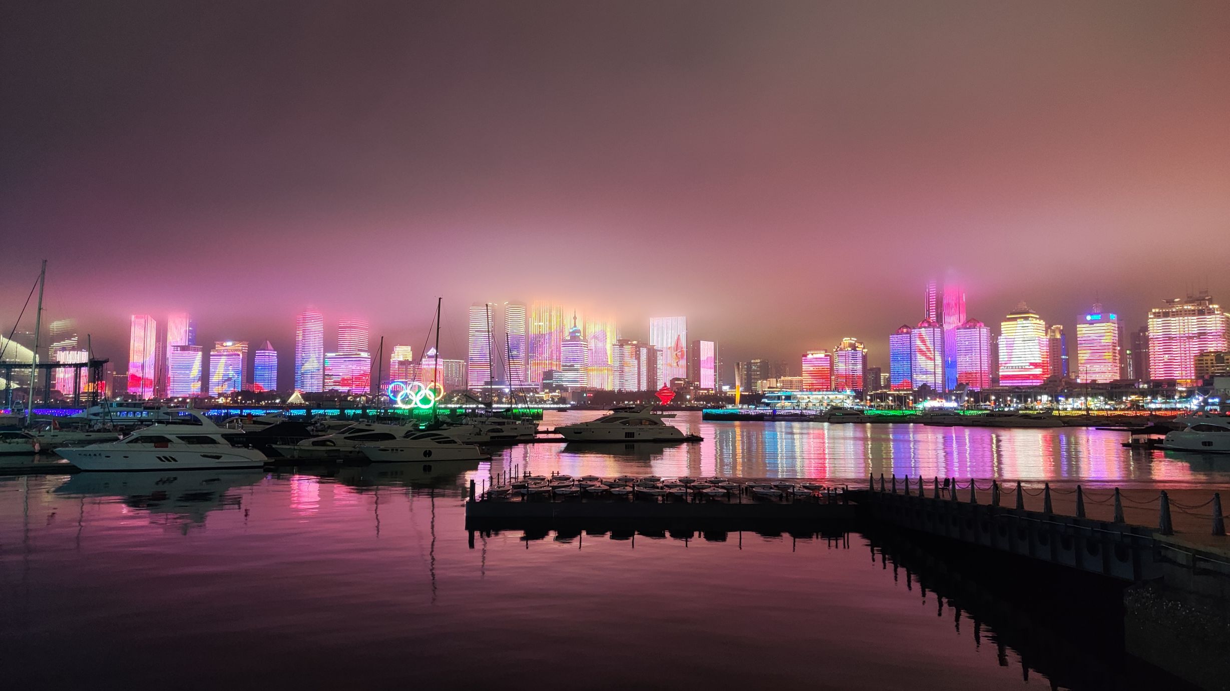 #### 1. 青岛奥帆中心 - 交通:乘坐地铁3号线到浮山所站,出站后步行至奥帆中心。 - 特色:这里是2014年青岛亚运会的举办地,夜晚的灯光秀非常壮观。